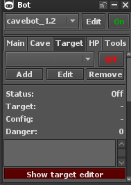 Para se iniciar o processo de configuração de alvos, primeiramente, você tem que nomear a configuração, da mesma forma como fez para o cave bot (escolher um nome), clicando no botão “Add”.